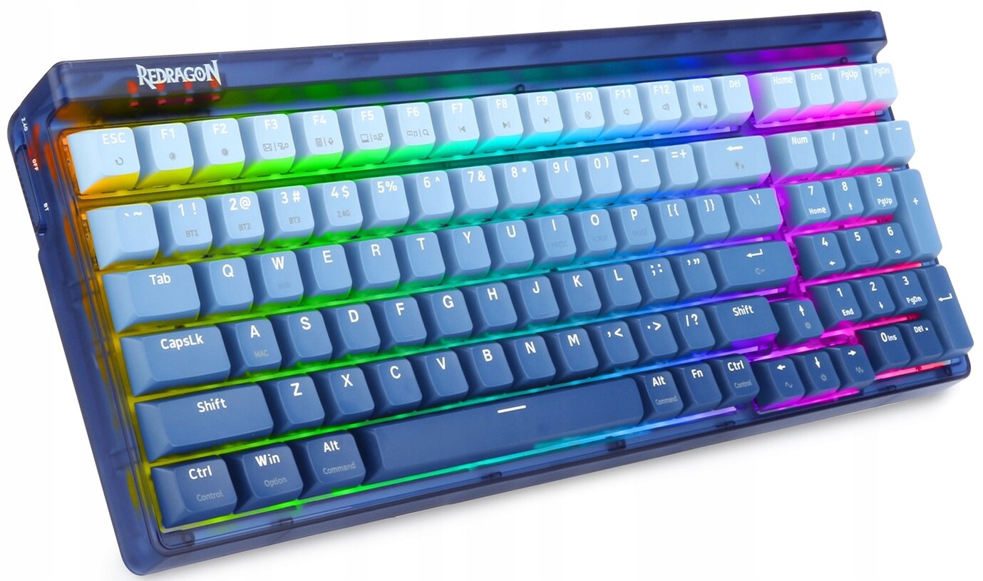 Redragon Garen RGB wyróżnia się nietypową, przenikliwą obudową i nakładkami na klawisze w gradiencie. Układ 90% sprawia, że klawiatura jest kompaktowa, a wypełnienie pianką redukuje hałas podczas energicznych uderzeń. Pełne, konfigurowalne podświetlenie RGB rozświetla całą powierzchnię klawiatury, tworząc efektowną oprawę wizualną Twojej rozgrywki.