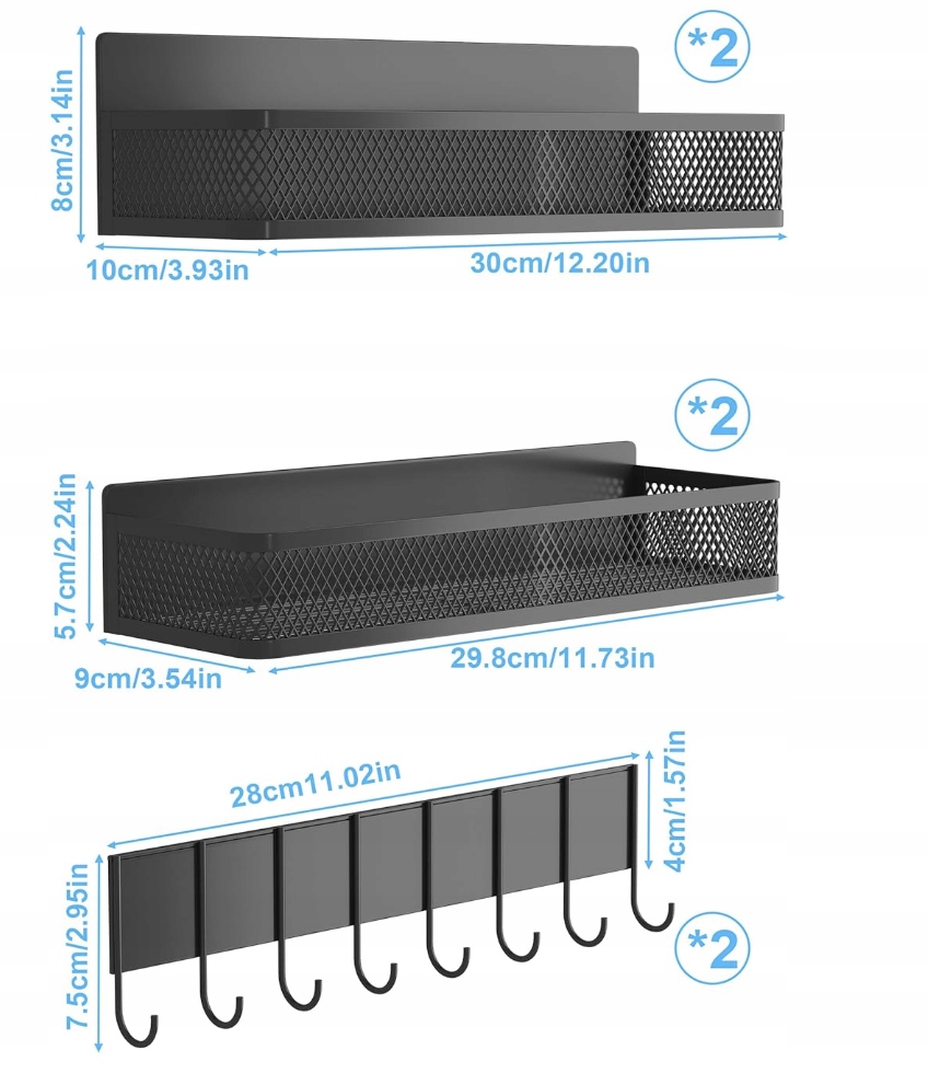 Wymiary produktu Dużej półki: 2x 10 cm (gł.) × 8 cm (szer.) × 30 cm (wys.) Maksymalne obciążenie: 5 kg